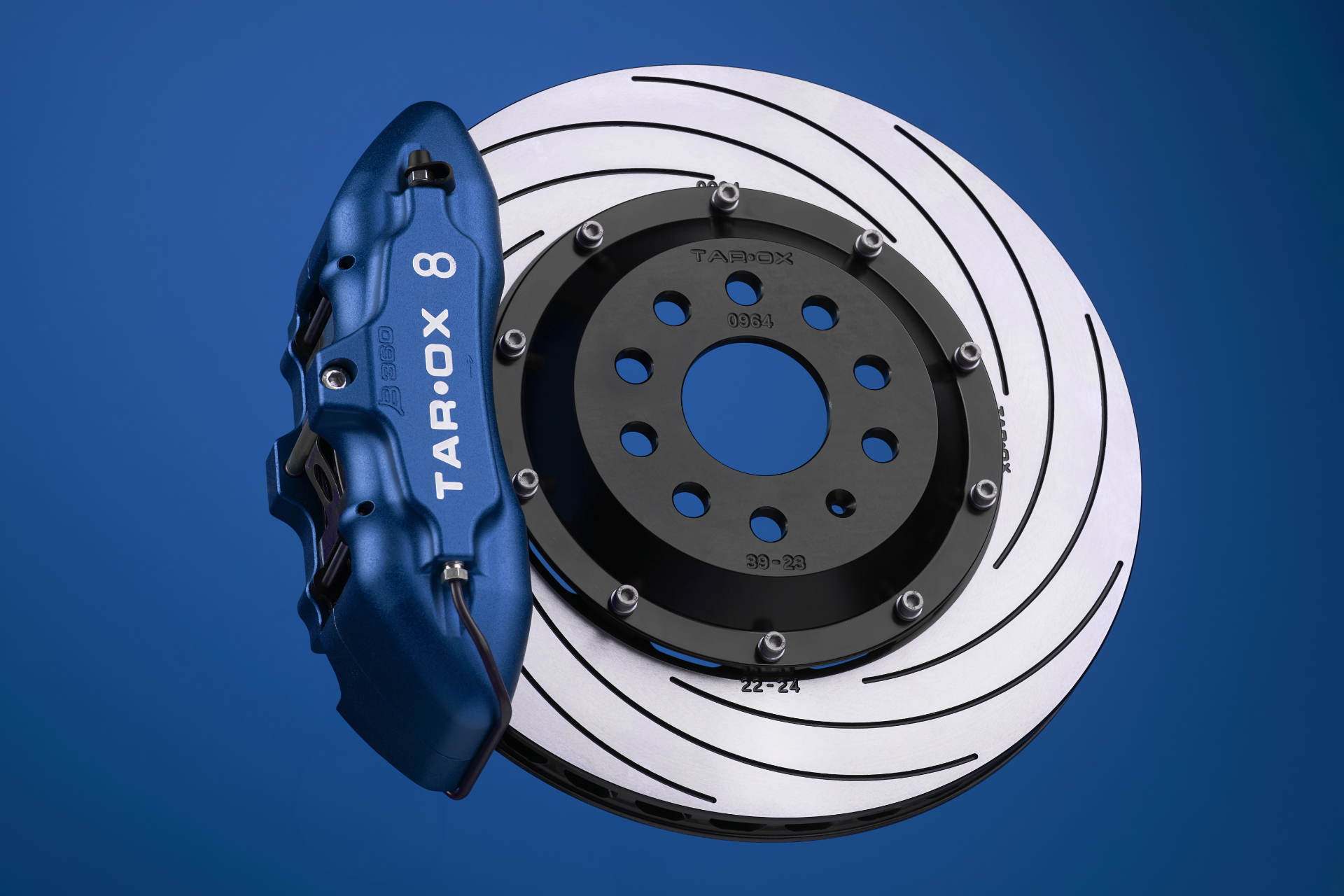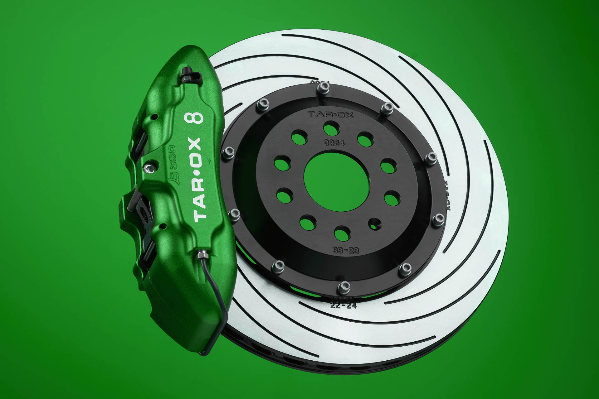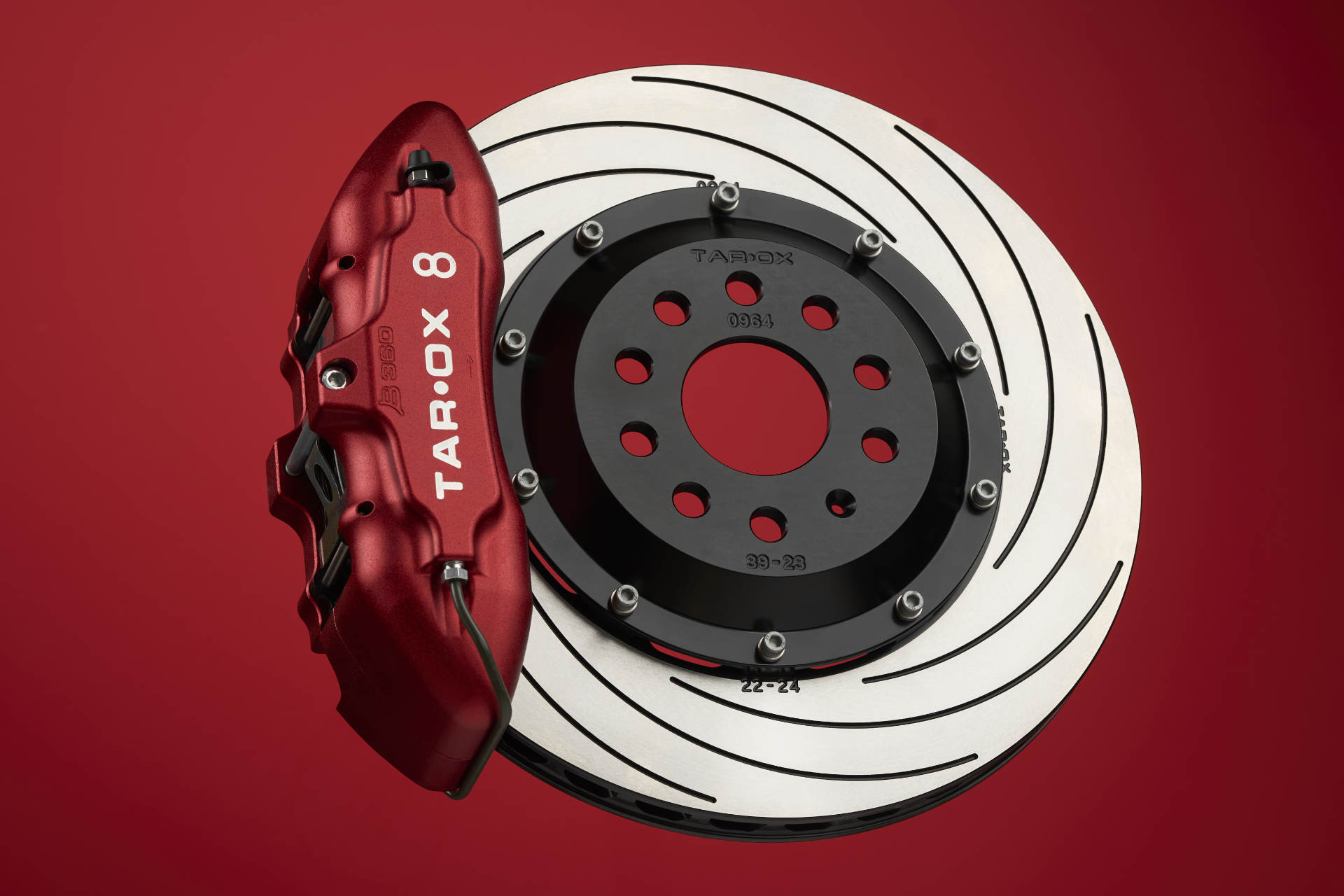 All TAROX brake systems feature calipers CNC machined from the highest quality billet alloy and each unit is built and tested by hand at our Italian factory. The two piece design is held together with multiple high tensile steel bolts proven to provide a stiffer overall chassis then mono block calipers. This stiffness translates to a more responsive pedal even with increased levels of braking force. The anodised billet pistons feature internal seals reducing the risk of scorching, eliminating weathering and negating the need for routine servicing.